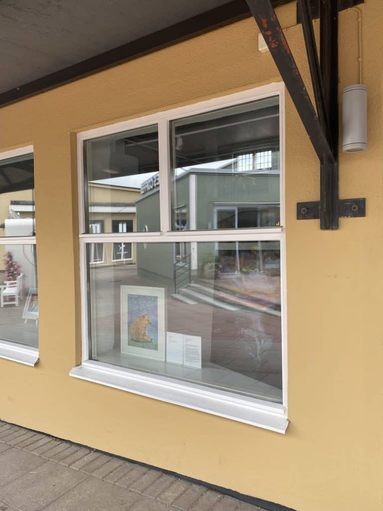 I fönsterna till en av lokalerna på High Square ser ni vackra tavlor målade av Susanne Ellingsworth Wiinikka. En lokal konstnär som målar allt från arkitektur och porträtt, till djur och natur. Tavlorna är ofta målade i akryl men ibland även i olja och akvarell. Inspiration kommer ofta från Tornedalen där Susanne har rötter från.