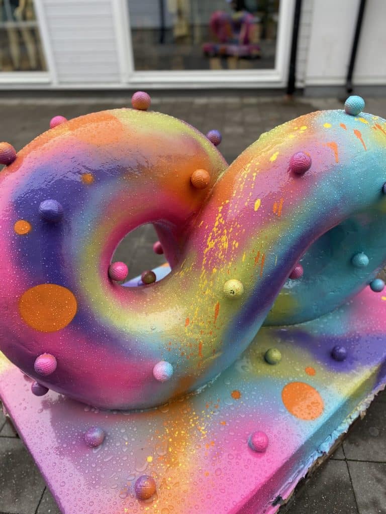 På High Street har vi två färgglada skulpturer som även dessa är skapade av Grafittisthlm. De matchar vår fina muralmålning och man blir verkligen glad när man ser dem!